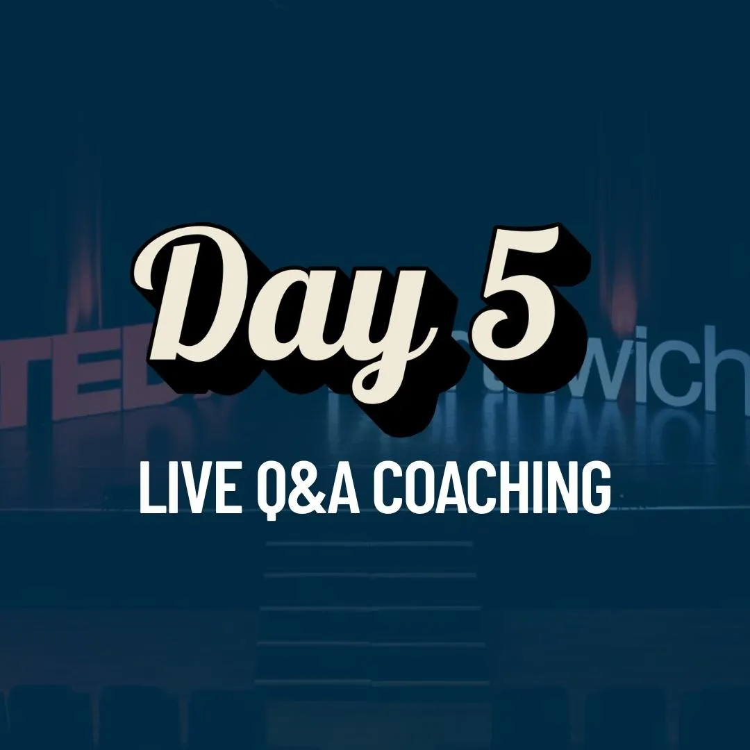 Day 5 Win - A Clear Path Forward: By the end of Day 5, we aim to have addressed all your queries, filled in any gaps, and provided you with a clear, comprehensive roadmap to your TEDx Talk. This is your chance to ensure you're fully prepared to embark on this exciting journey.
